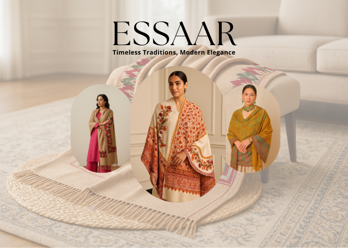 At ESSAAR, we believe a shawl is more than fabric — it is a second skin, a story draped around you.